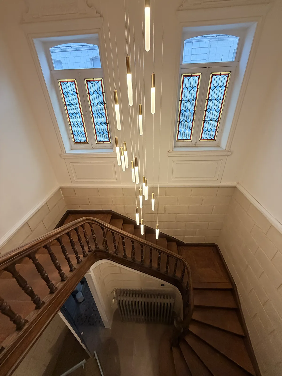 Les postes sont répartis dans différents espaces communs, salons, paliers, espaces ouverts, afin de préserver une ambiance vivante mais maîtrisée.